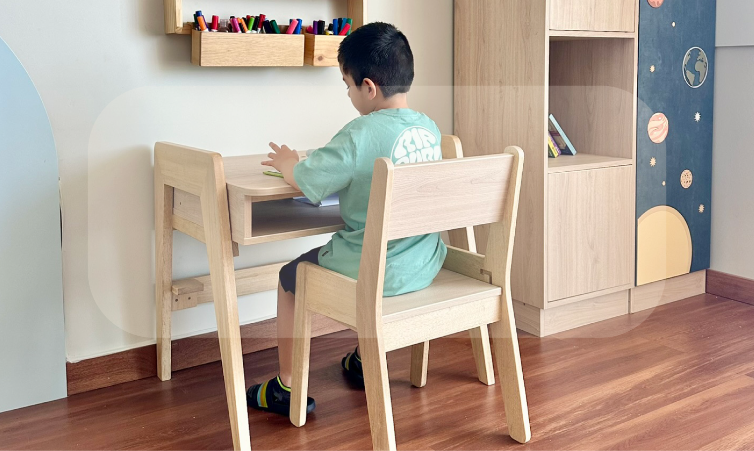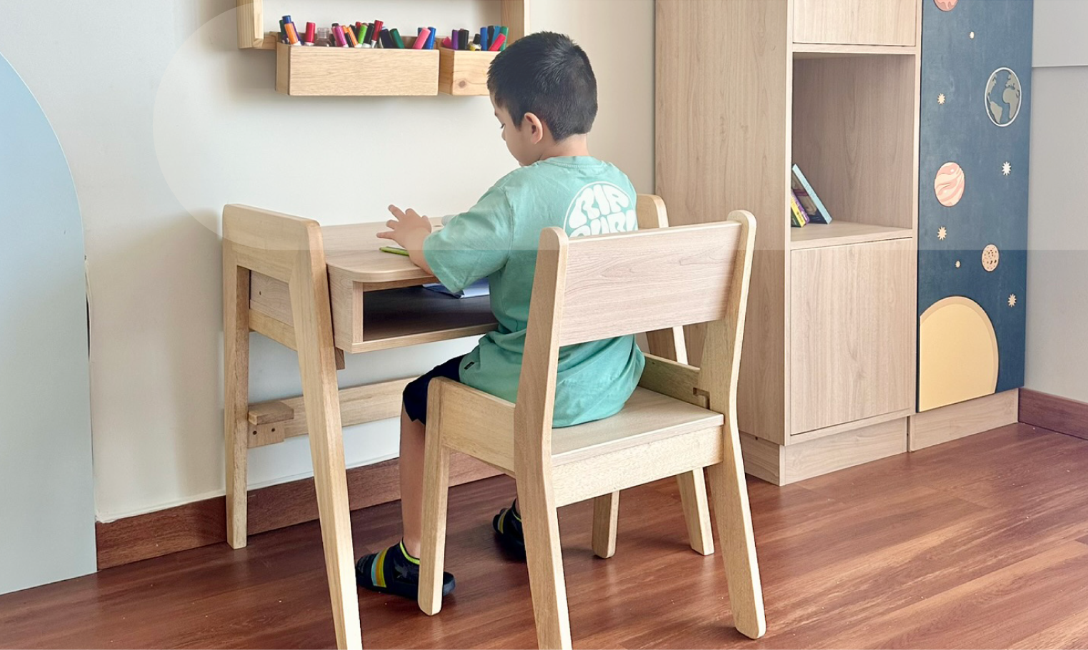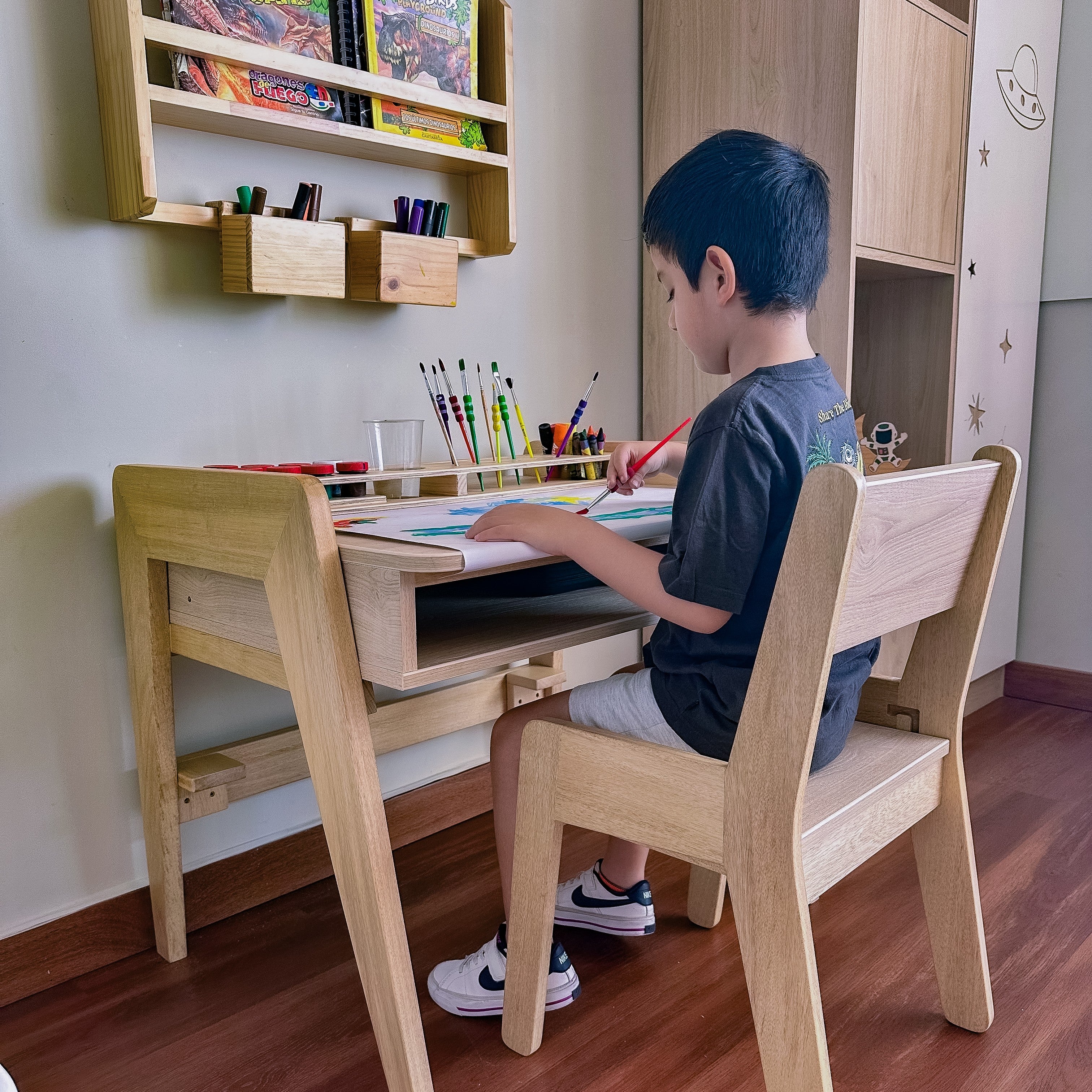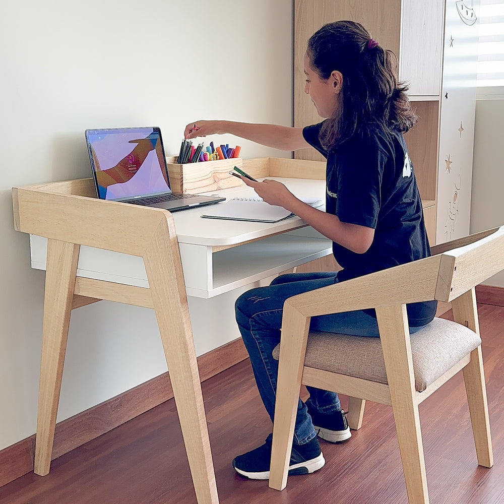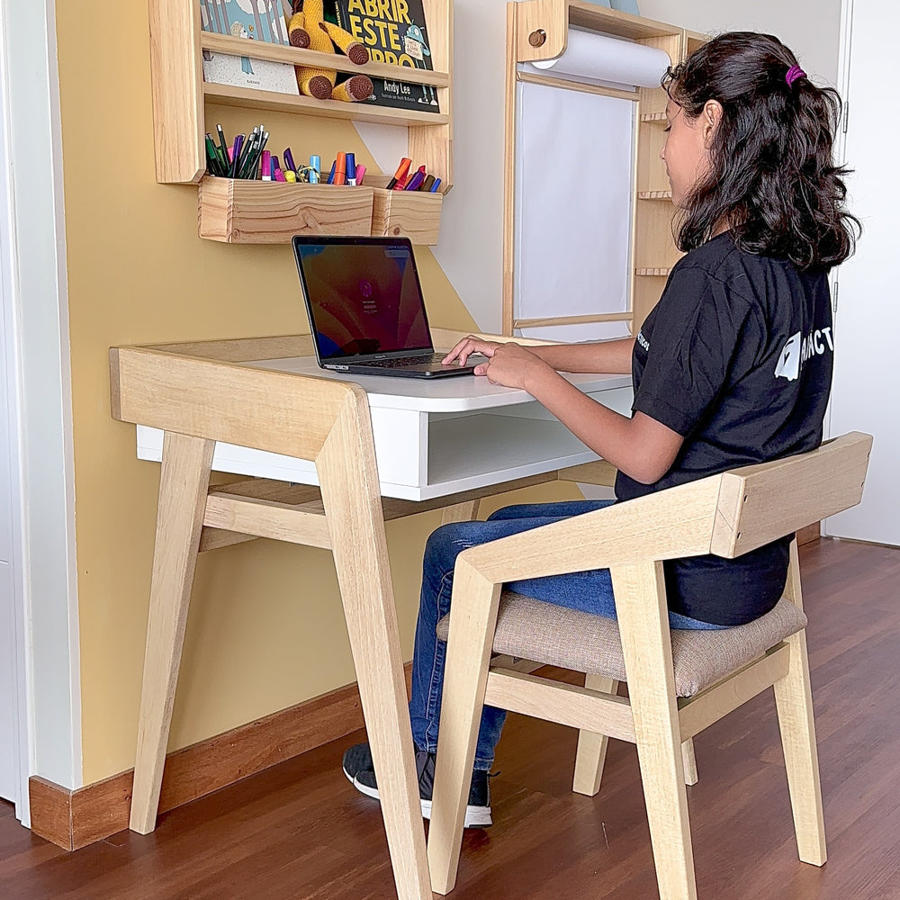 La mesa y librero que compré organizaron todo el ambiente de mi hijo.